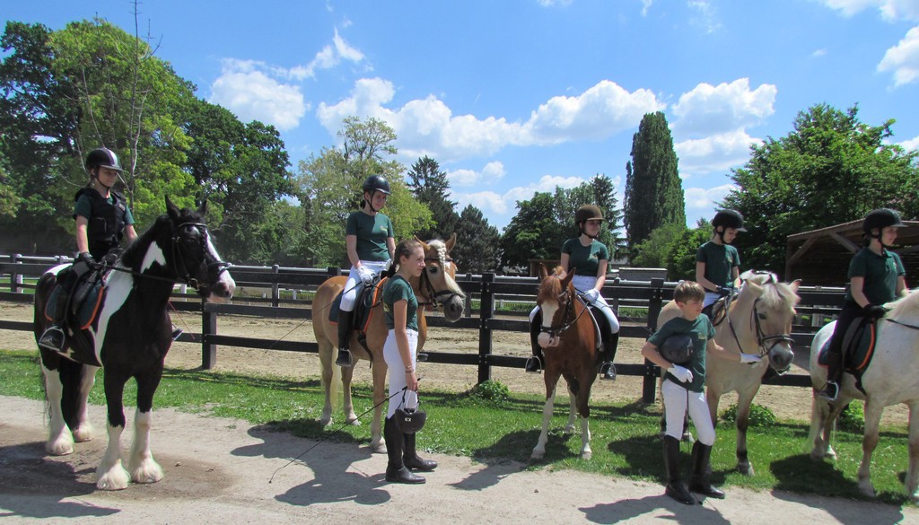 Noch vor der Siegerehrung dieser beiden sammelten sich schon die 11 anderen Cavallino Starter fürs Pferde Sport & Spiel ein und begannen zum Putzen und Herrichten für ihren Bewerb. Schabracken wurden getauscht und die Sättel und Zaumzeuge zur Sicherheit noch mal auf Hochglanz poliert. (Man möge erwähnen das bereits am Vortag alle Sättel und Zäume stundenlang geputzt wurden :D) Die Mädls zöpfelten die Ponys ein, und Angie und ich die Kids.